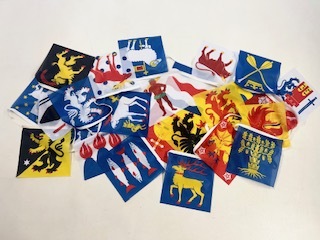 Flaggspelet är i tyg med totalt 25 landskapsflaggor fastsydda på uv-beständigt tygband.